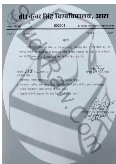 VKSU MEd 4th Semester Exam Form 2025 / Session 2021-23 Update: Veer Kunwar Singh University MEd 4th Semester Session 2021-23 Offline Exam Form Apply will Starts from Starting Date: 6th February 2025 to Last Date: 13th February 2025 via. Offline Process.