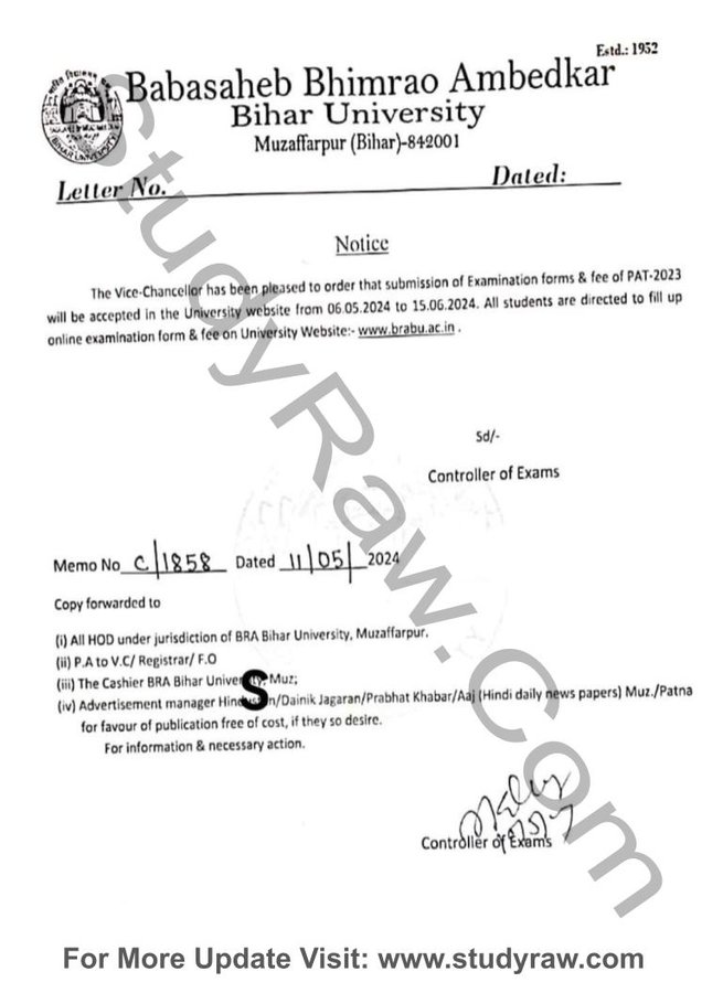 BRABU PAT 2023 Form Apply Last Date | 15th June 2024 |