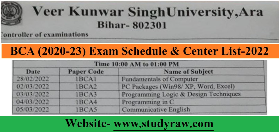VKSU BCA Sem-1 Exam Date-2022/ Center List-PDF Update- Veer Kunwar Singh University ने BCA 1st-Semester Exam-2021-22 (Session-2020-23) का Exam Schedule & Center List जारी कर…View More